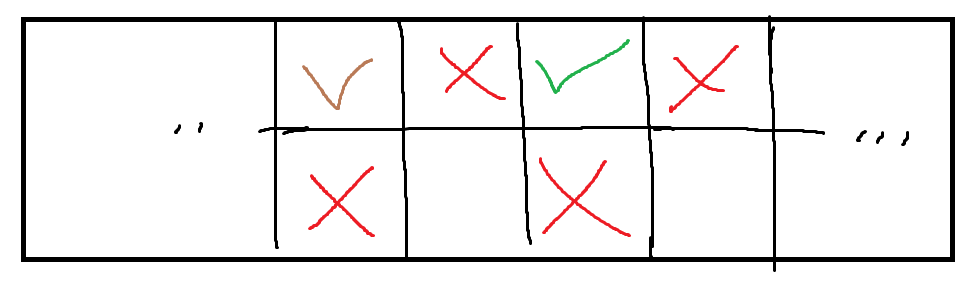 정답은 (k - 1열 선택한 스티커와 다른 행)의 스티커를 선택하는 것입니다.